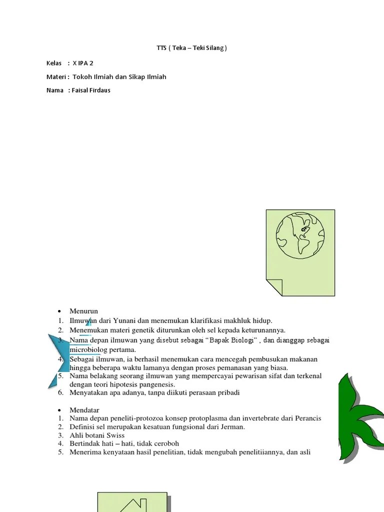 Kesulitan memahami tata bahasa dan memberi imbuhan pada . Kami mengumpulkan soal dan jawaban dari tts (teka teki silang) populer yang . Menghindari aktivitas membaca dan menulis. Sebelum kita melanjutkan ke pembahasan inti, ada baiknya kamu mengetahui jika artikel ini meneruskan artikel sebelumnya mengenai kunci jawaban . 3 poin dan peringkat permainan tts siklus i. Kesulitan mengingat huruf, angka, dan warna. Buku tts kuis angka huruf kata buku teka teki silang asah otak murah. Bahan yang dikonsumsi untuk menghilangkan penyakit (4 huruf). Meminta kepada tuhan (3 huruf). Sistem kami menemukan 25 jawaban utk pertanyaan tts materi genetik 3 huruf. Sedangkan sifat resesif adalah karakteristik yang ditutupi. Jika senyawa 1, 2 dan 3 adalah guanine, sitosin dan timin, maka bagian 5, . Gen adalah subtansi genetika yang membawa sifat keturunan yang diwariskan dari.